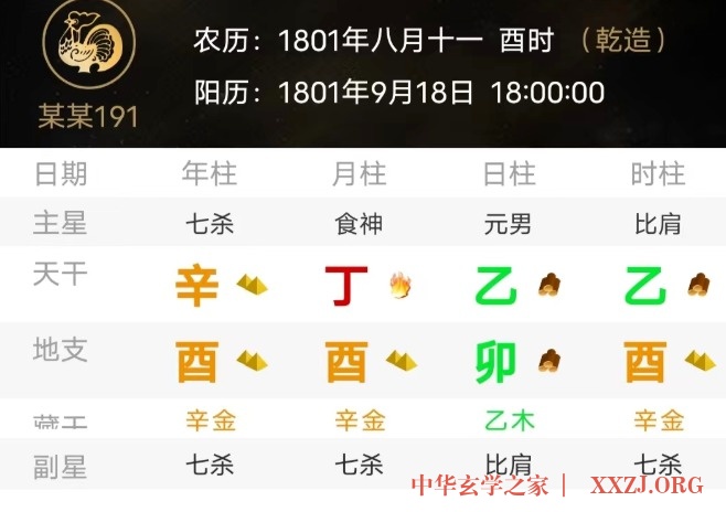 韩信,乾造,辛酉、丁酉、乙卯、乙酉。