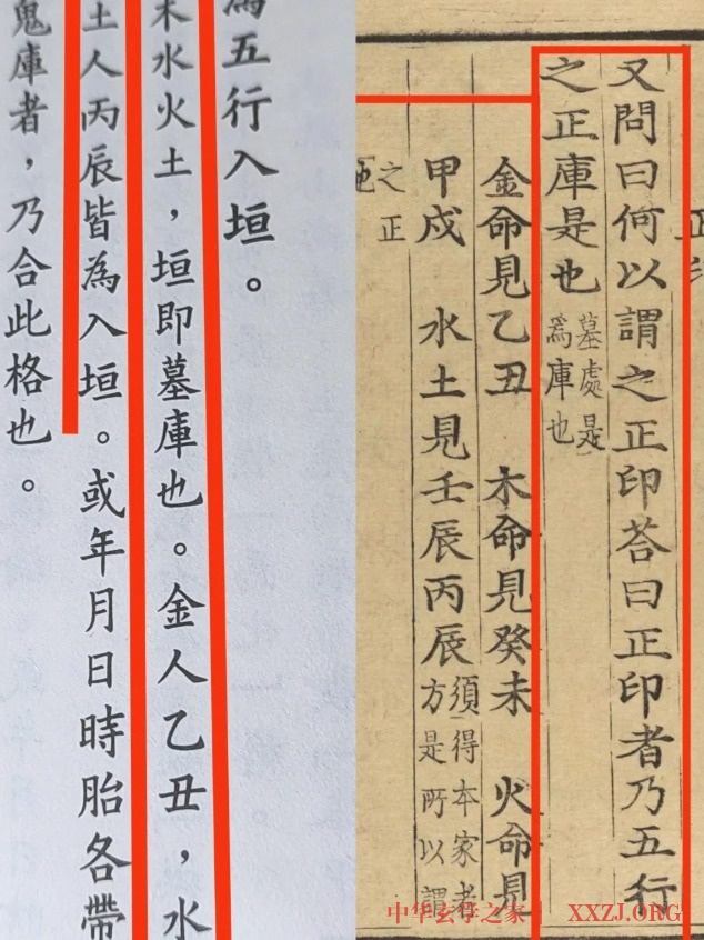 《理愚歌》云:禄马四库又须求尽在五行元葬处:此表得墓,为印库也。 本家者即前所谓:金命见乙丑,木命见癸未,之类方为是也。 见别未是不可便作正印。