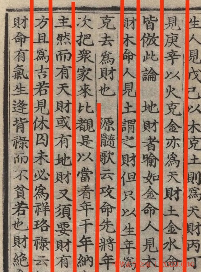 若干元天财者,如甲乙生人见戊己,以木克土为天财,丙丁生人见庚辛,以火克金为天财,土金水命余皆仿此论。