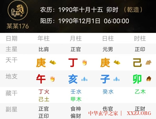 乾造,庚午、丁亥、庚子、己卯。
