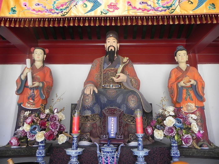 文昌帝君,掌管福禄、主宰功名,又称梓潼帝君。在道教尊为“更生永命天尊”、“七曲灵应天尊”、“保德宏仁大帝”等,居玉真庆宫。《历代神仙通鉴》称祂:“上主三十六天仙籍,中主人间寿夭祸福,下主十八地狱轮回”。