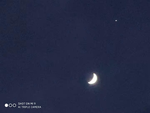 不经意间抬头,看到天上的月牙和一颗大放光明的星星,便想着把这星月辉映的景象拍下来。
