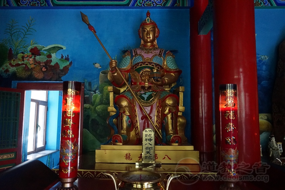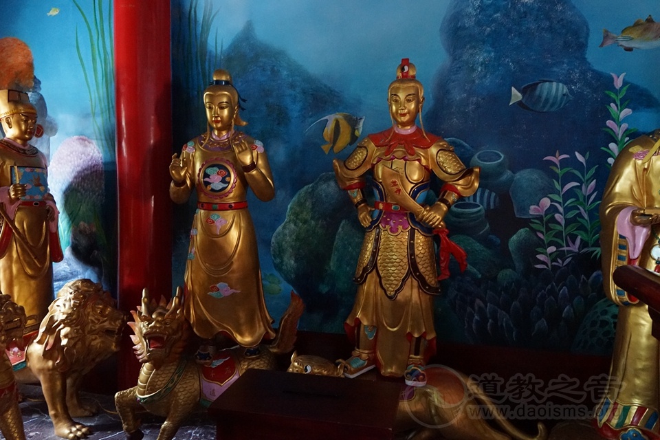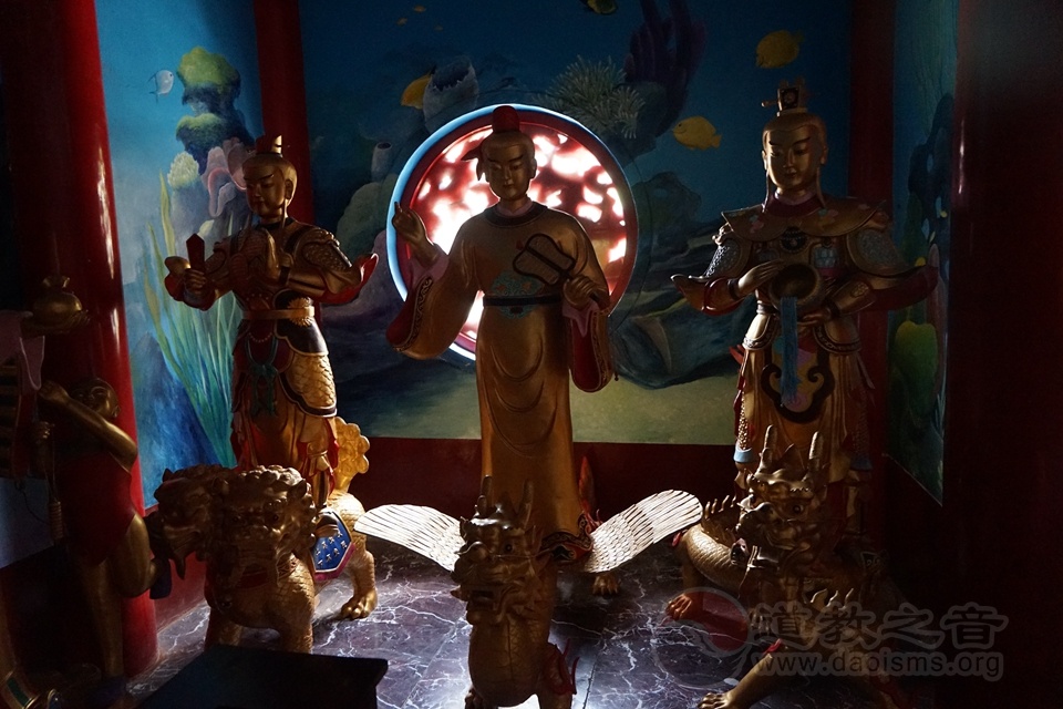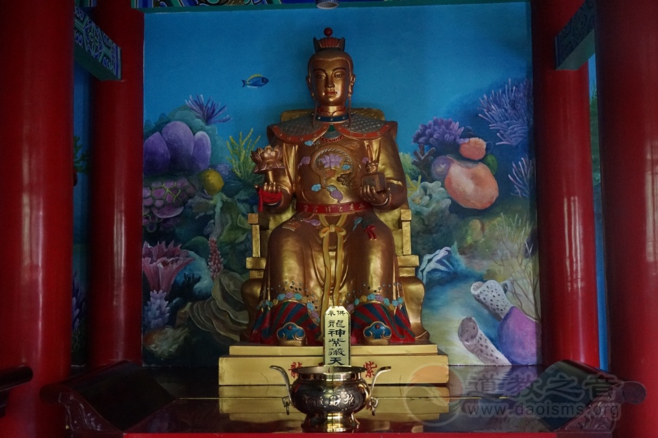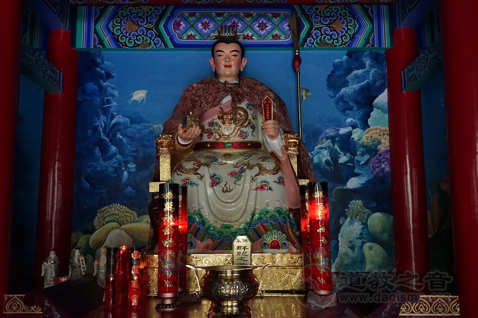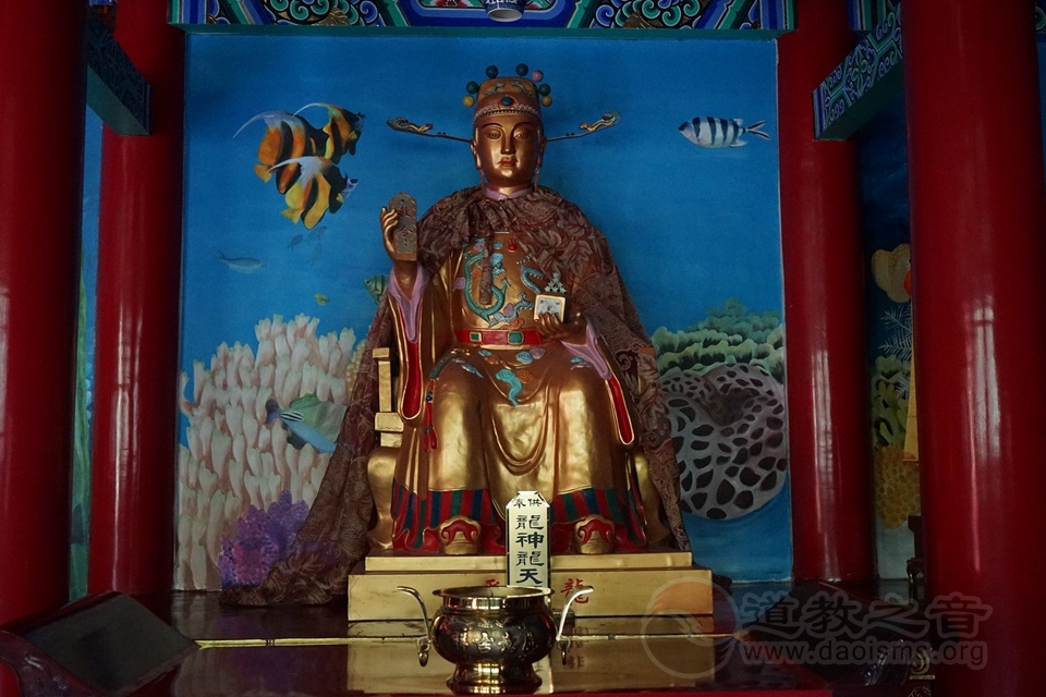 龙王,道教尊为天衣玄皇辰极灵威壬癸龙王伺辰真君甘露流润天尊,居天一紫皇宫、水晶宫。另外,东海水府仙官渊圣广德王居青华宫,南海水府仙宫洪圣广利王居丹灵宫,西海水府仙官通圣广润王居素灵宫,北海水府仙官冲圣广泽王居玄冥宫。