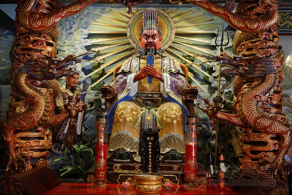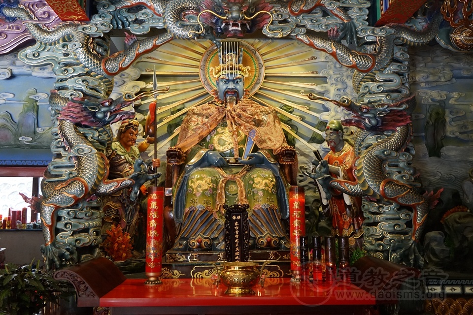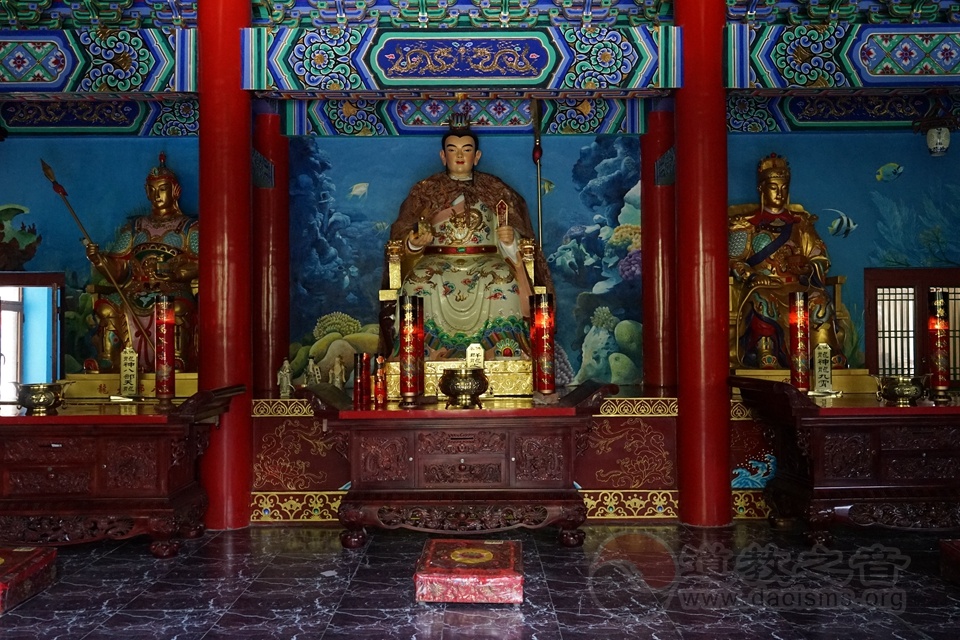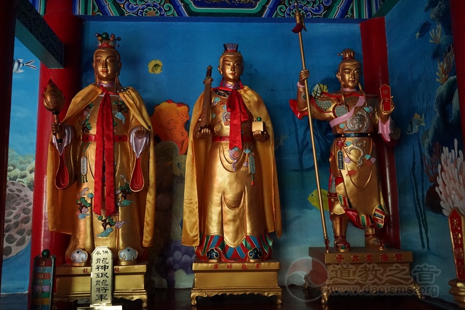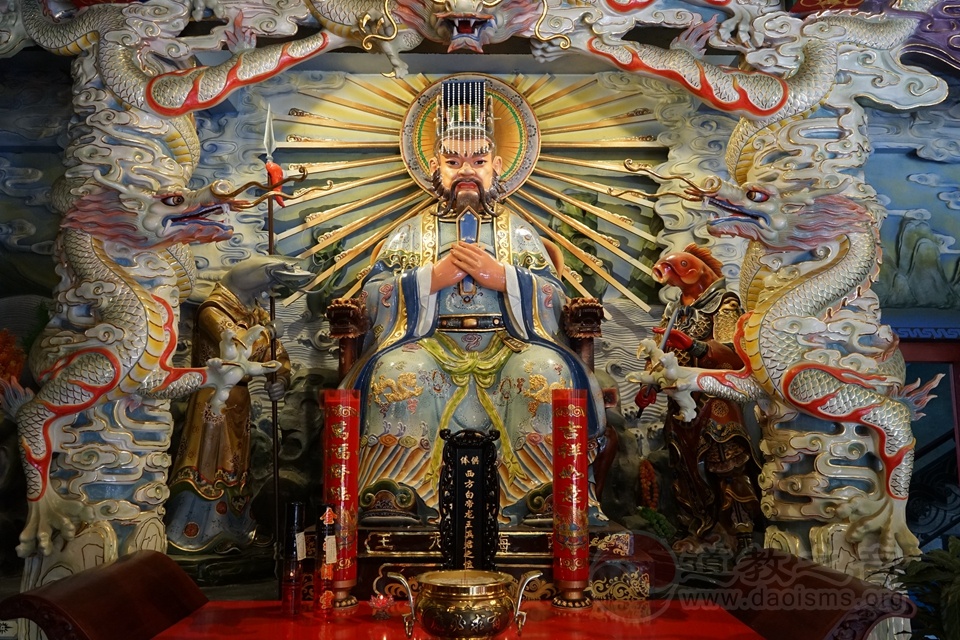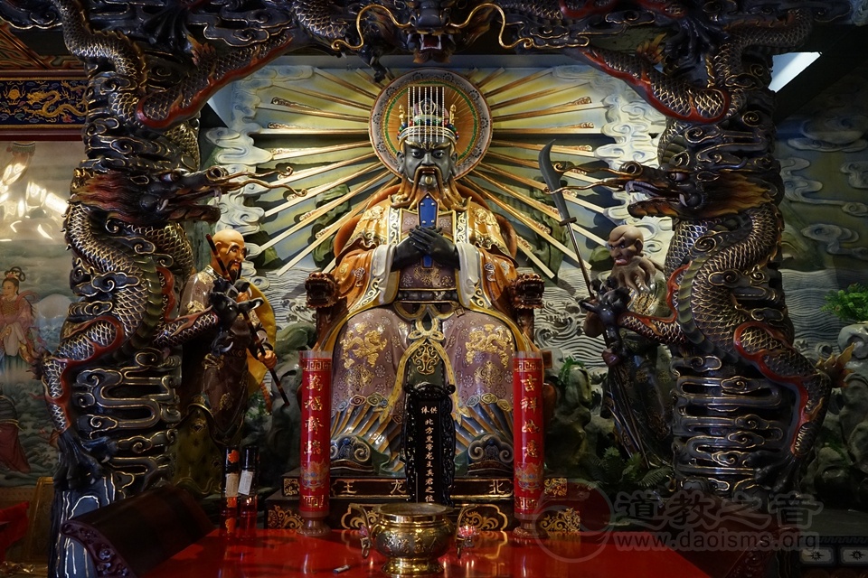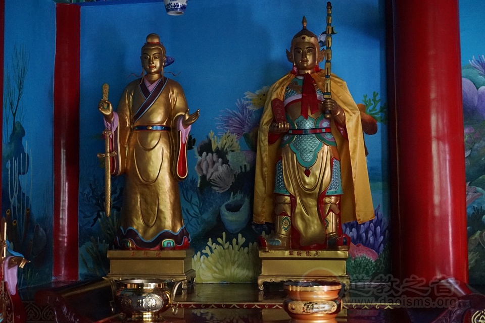 龙王,道教尊为天衣玄皇辰极灵威壬癸龙王伺辰真君甘露流润天尊,居天一紫皇宫、水晶宫。另外,东海水府仙官渊圣广德王居青华宫,南海水府仙宫洪圣广利王居丹灵宫,西海水府仙官通圣广润王居素灵宫,北海水府仙官冲圣广泽王居玄冥宫。